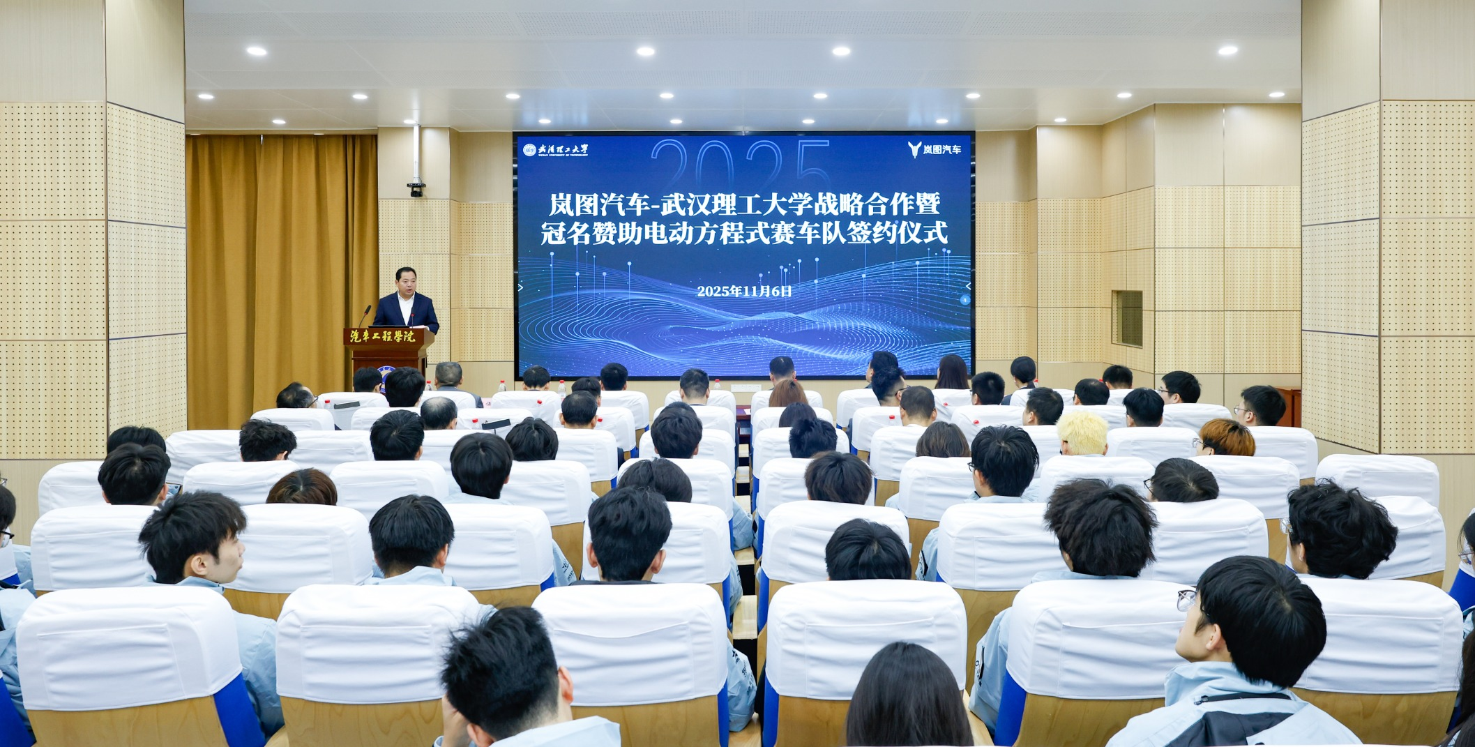 11月6日上午,岚图汽车科技股份有限公司与武汉理工大学战略合作暨电动方程式赛车队冠名赞助签约仪式在学校汽车工程学院保隆科技报告厅举行。岚图汽车科技股份有限公司党委书记秦捷,学校党委书记孟芳兵、副校长胡剑等出席,相关职能部门与学院负责人、车队指导教师及全体队员共同参加。