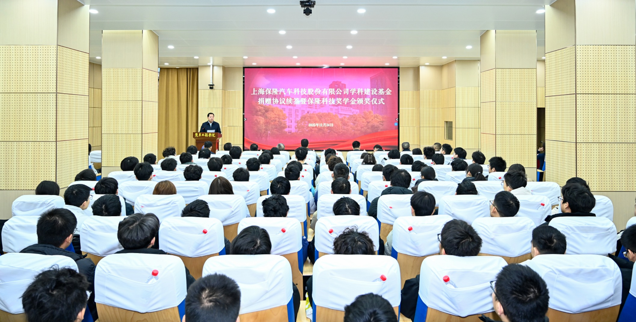 12月24日,上海保隆汽车科技股份有限公司与学校学科建设基金捐赠协议续签仪式在汽车学院保隆科技报告厅举行。上海保隆汽车科技股份有限公司名誉主席陈洪凌校友,学校党委书记孟芳兵、副校长胡剑出席,相关职能部门、汽车学院负责人与师生代表参加会议。