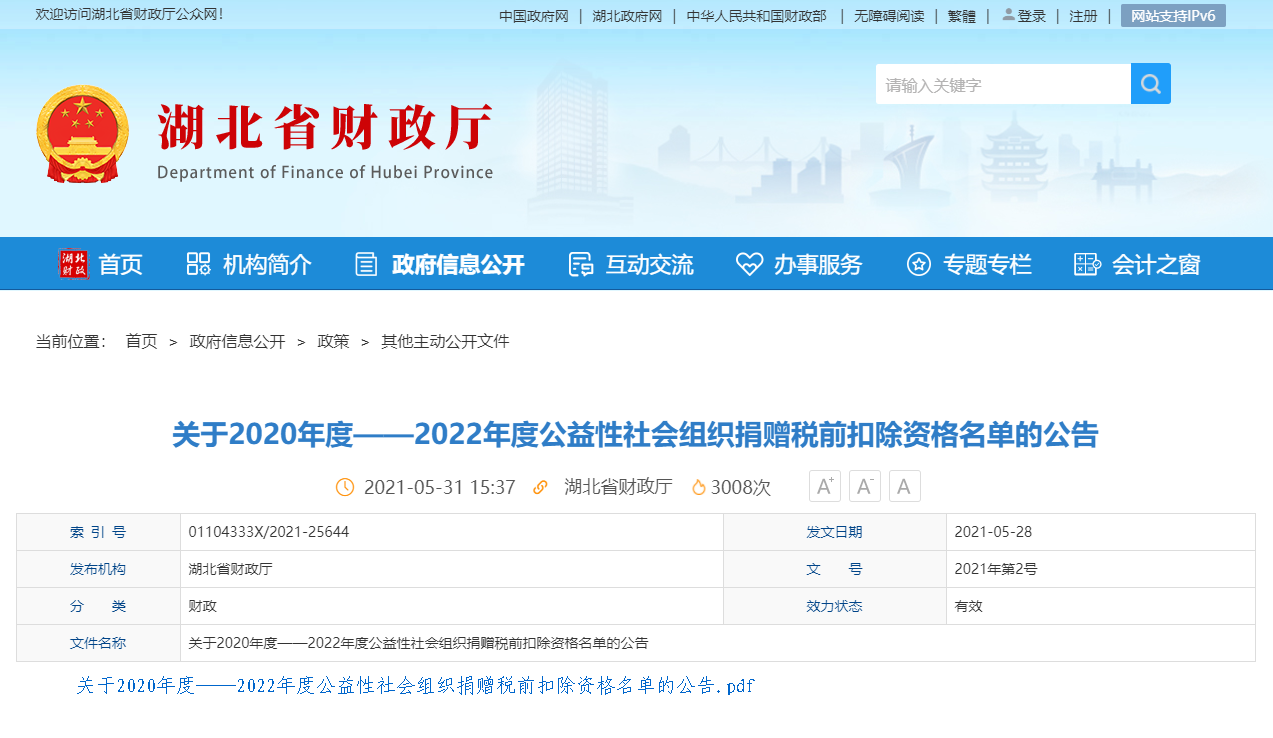 上一篇: 湖北省财政厅 国家税务总局湖北省税务局 湖北省民政厅关于2023年度—2025年度公益性社会组织捐赠税前扣除资格名单的公告