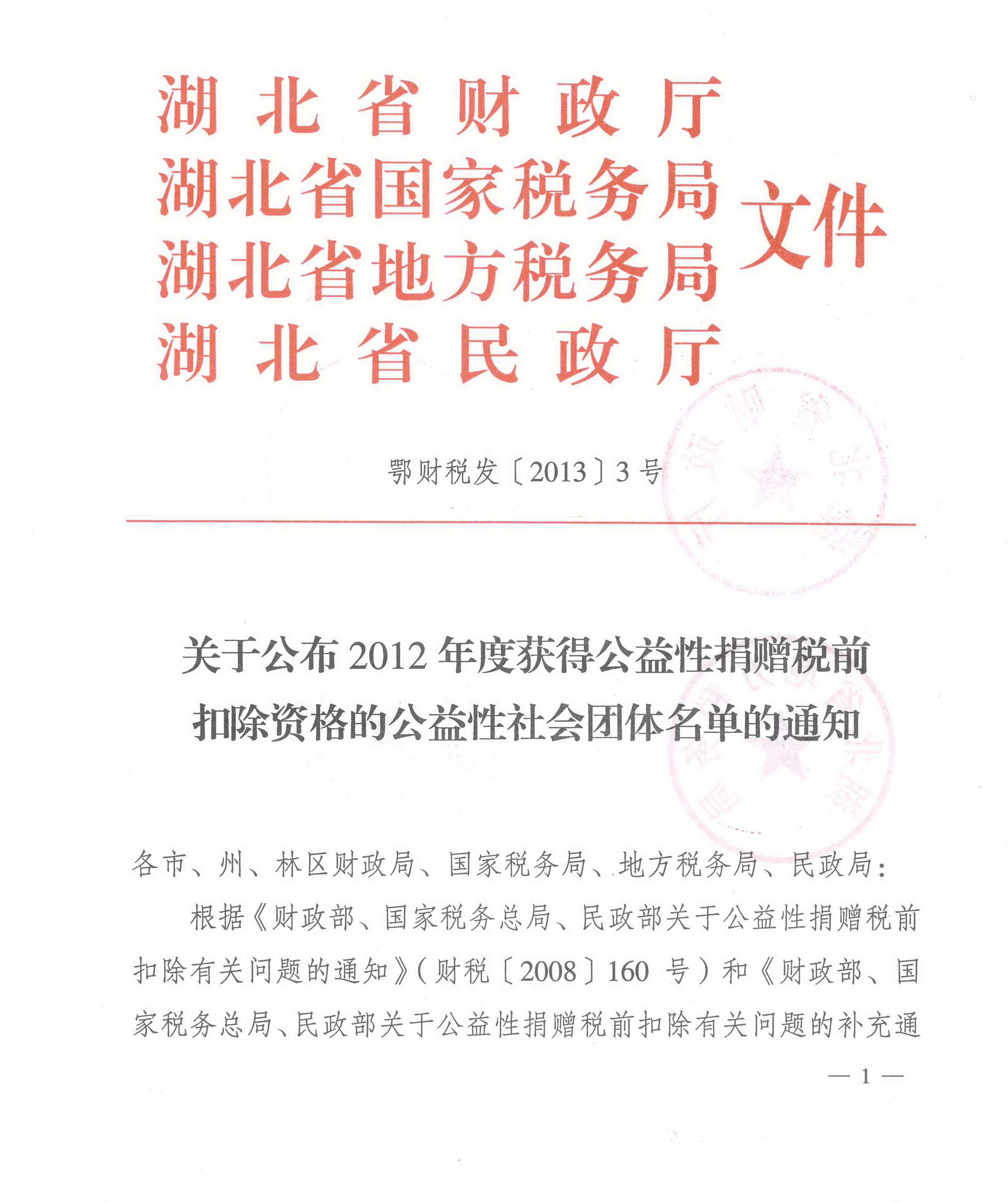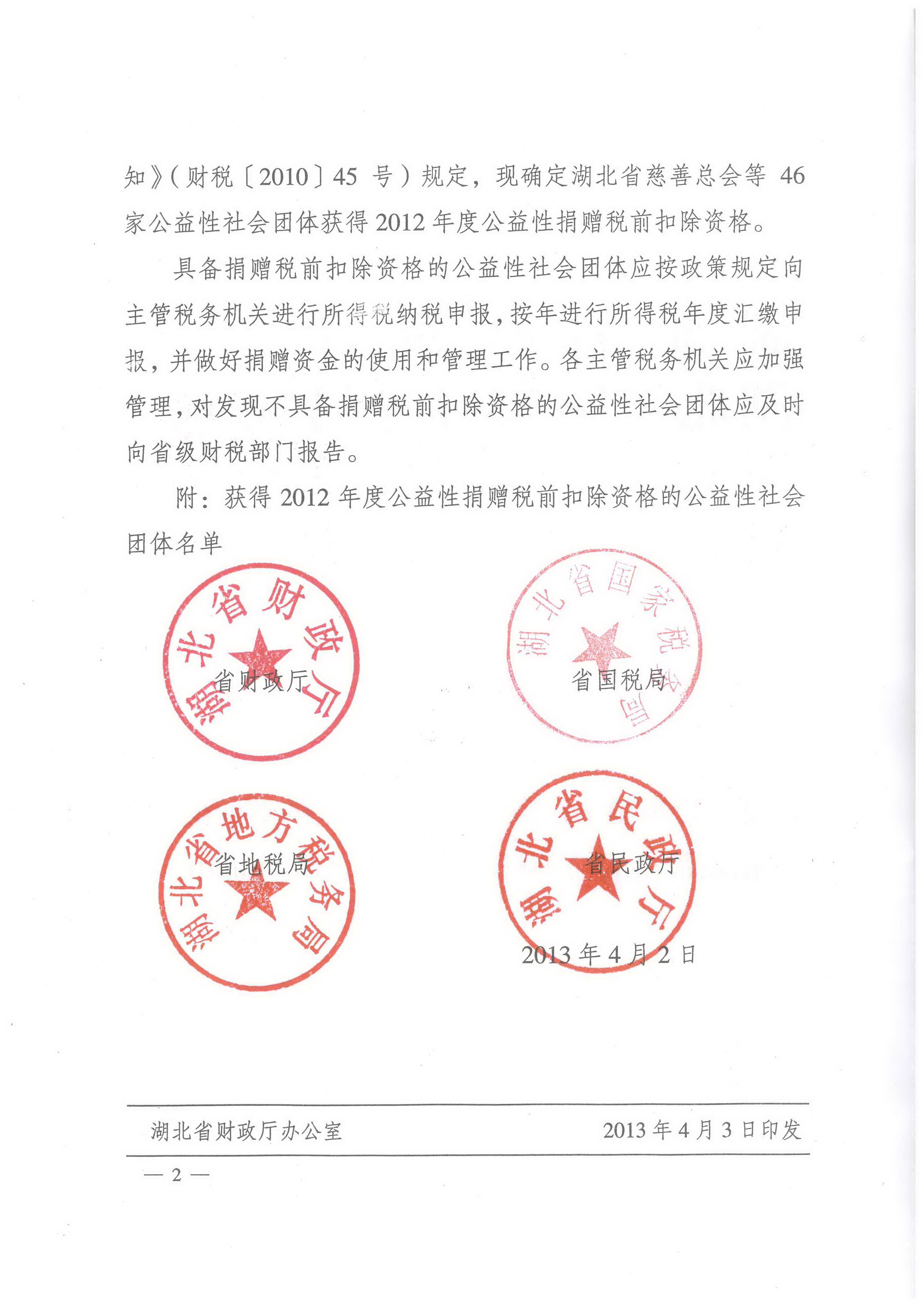 基金会获2012年度公益性捐赠税前扣除资格