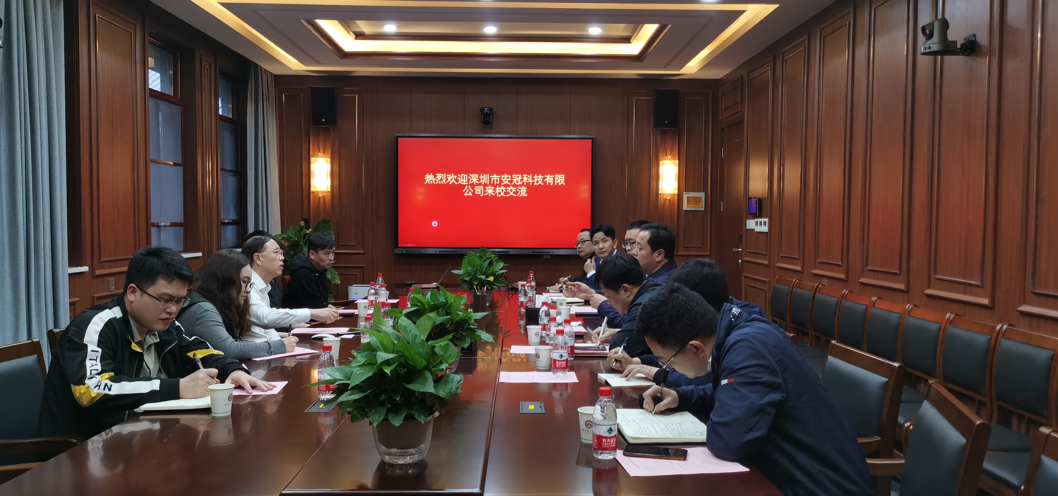 学校信息化办、基建处、社会合作处、信息工程学院、土建学院等单位负责人参加座谈,安冠科技有限公司CMO、董事长助理、武汉分公司负责人随行来访。