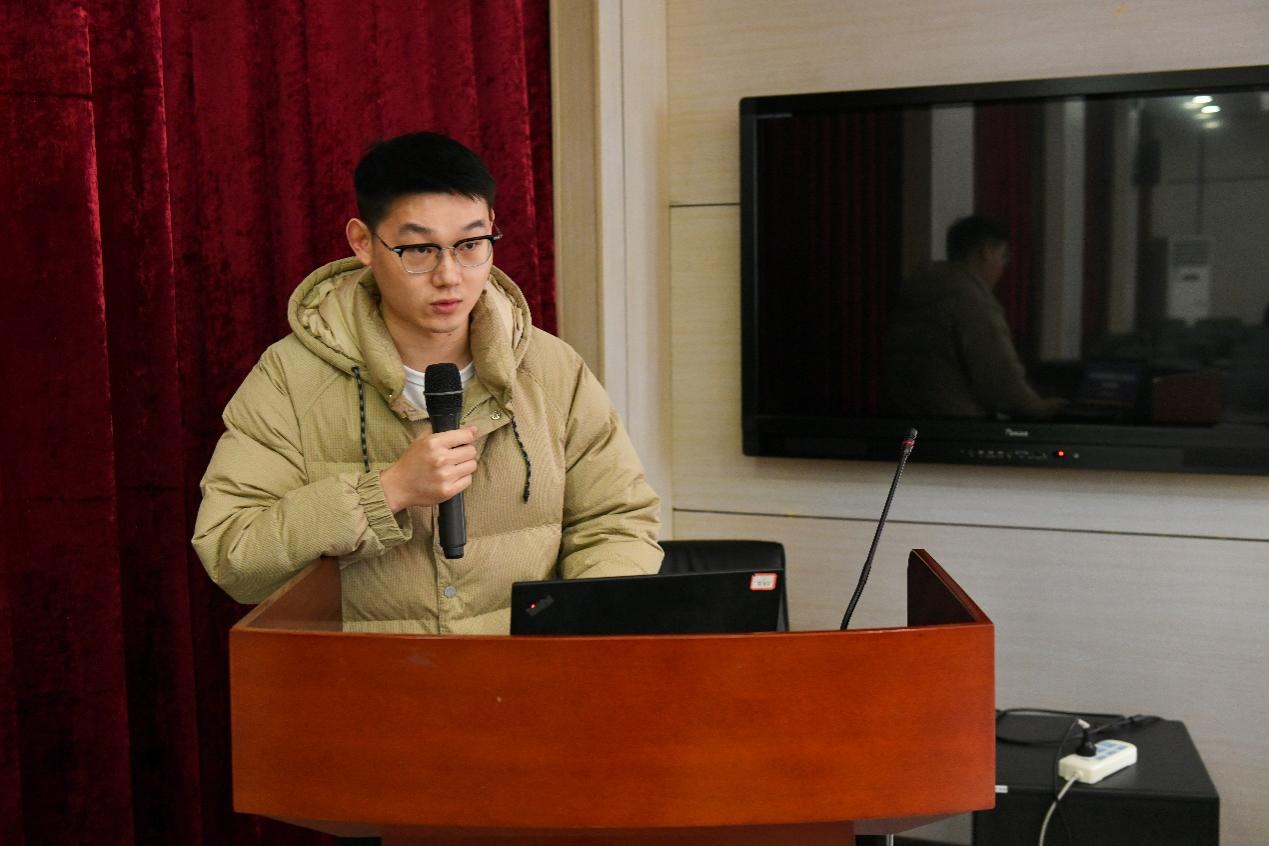 获奖学生代表王景晟同学进行发言,他对广西德福特科技有限公司表示诚挚的感谢,并结合自身情况表示了奖学金的激励作用;随后他表明了自身的决心:“材料学子当不负国家期待,争做学科一流人才,成就自己,奉献社会。”