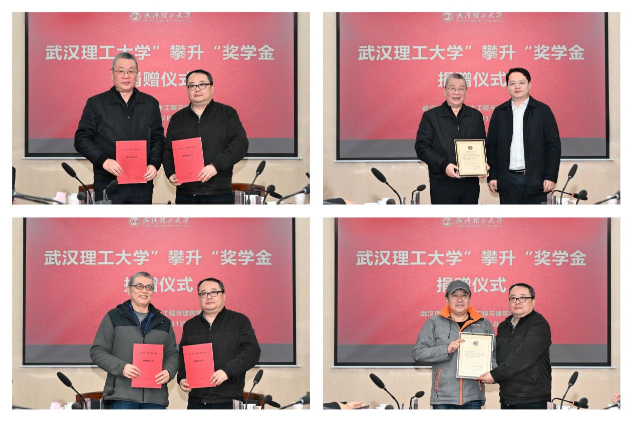 12月31日上午,土建学院在东教216会议室举行“攀升”奖学金捐赠仪式。校务委员会副主任王乾坤、原土建学院党委书记袁海庆、“攀升”奖学金捐赠方武汉理工大学建工系80级校友代表、武汉校友会代表、社会合作与校友工作处副处长杨万庆、土建学院党委书记林凯、副院长陈伟、罗忆、万林波及师生代表出席。活动由土建学院副院长彭恺主持。