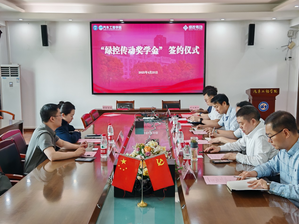 2025年4月25日上午,“绿控传动奖学金”签约仪式在汽车工程学院A403会议室举行。苏州绿控传动科技股份有限公司人力资源总监陆翠魁、培训专员钱程,武汉理工大学社会合作与校友工作处副处长杨万庆,汽车工程学院院长颜伏伍、党委书记刘耀胜、副院长汪怡平出席活动。仪式由汽车工程学院党委副书记蔡春主持。