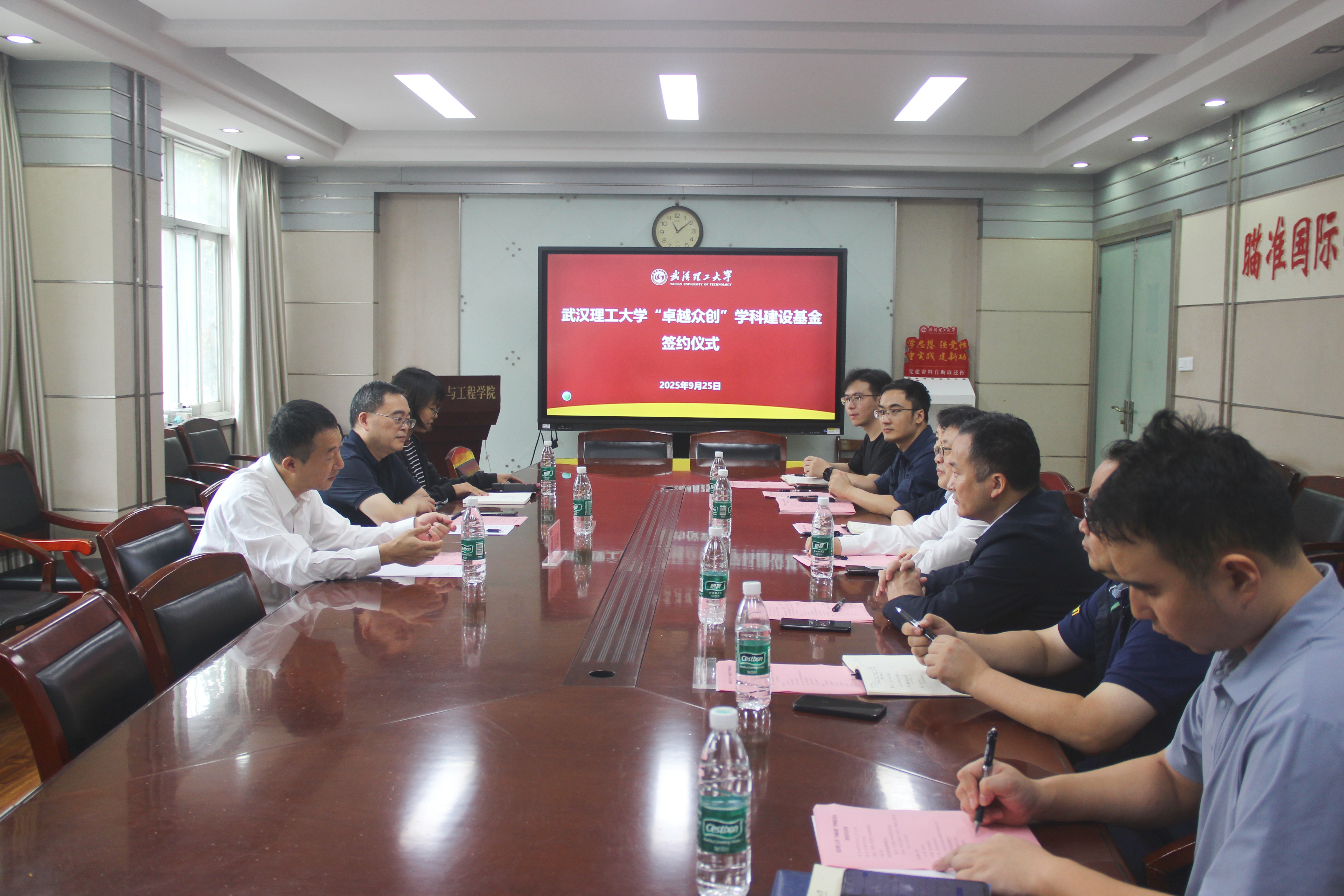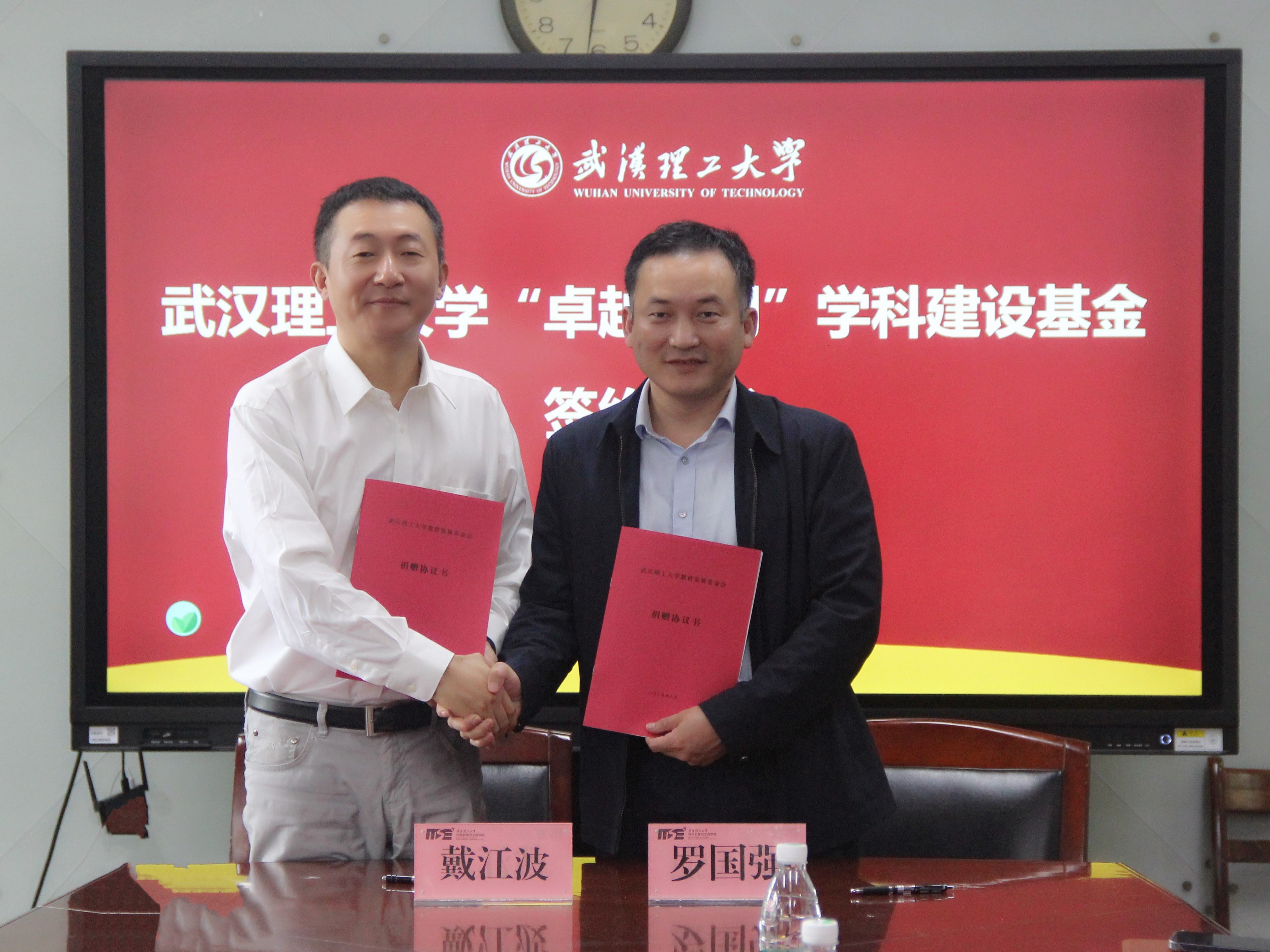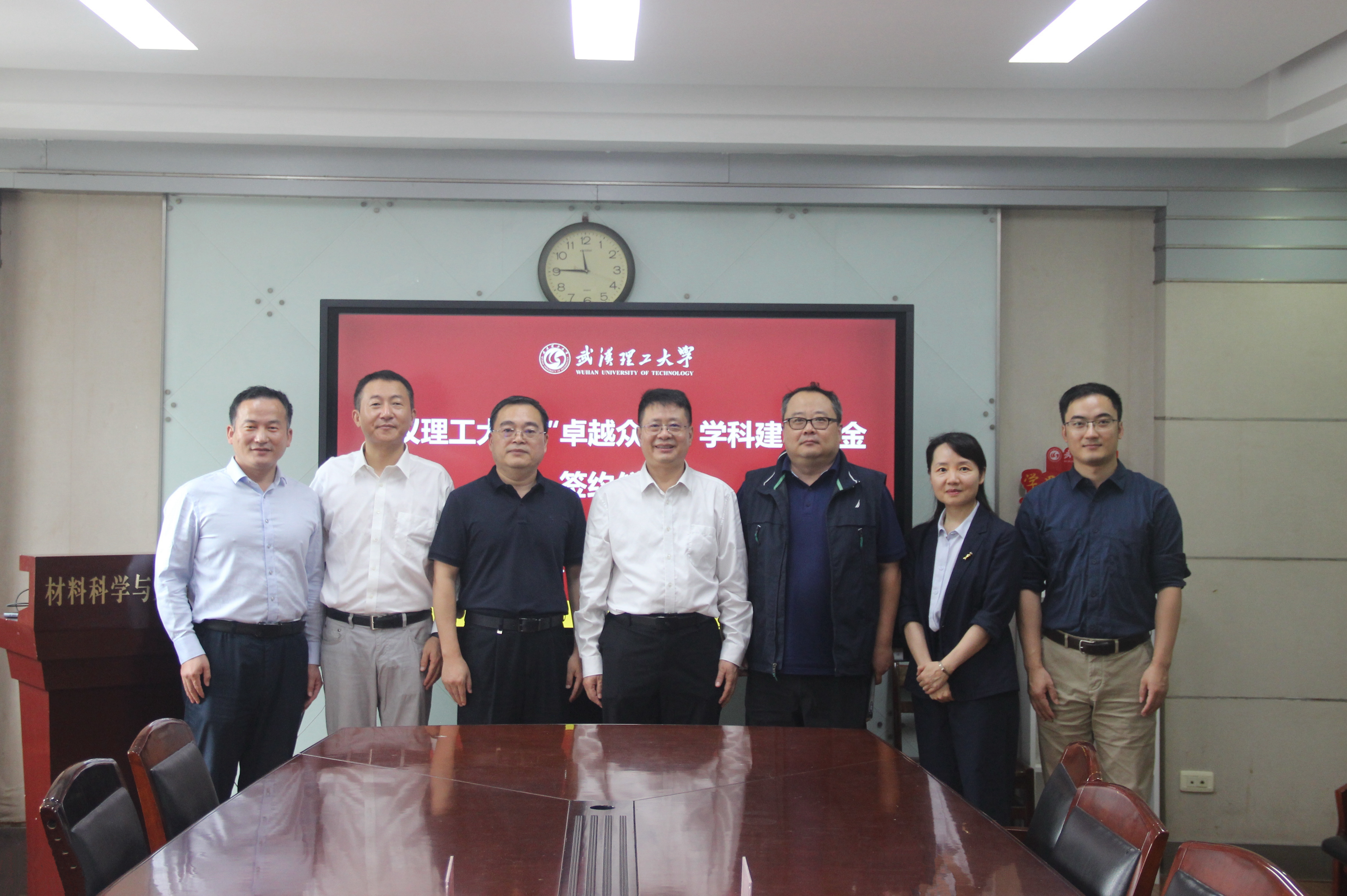近日,武汉理工大学“卓越众创”学科建设基金签约仪式在马房山校区工大楼317室隆重举行。武汉理工大学副校长麦立强,材料学院院长罗国强、党委书记罗小寒,社会合作处副处长杨万庆、材料学院党委副书记沈国芳、学工办主任周雄和辅导员闫博康出席仪式。武汉众创科技投资有限公司执行董事戴江波、武汉校友会秘书长张本仙、副秘书长高俊出席会议。仪式由材料学院院长罗国强主持。