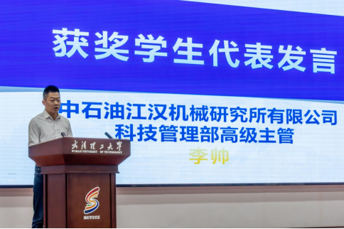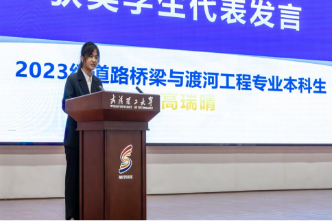 往届获奖学生代表、2012级机设本科专业毕业、中石油江汉机械研究所有限公司高级主管李帅发言,他回顾了在校期间的学习成长历程,感恩社会和母校共同织就的“成长网”,鼓励学弟学妹积极投身各类实践,以“不服输”的坚持突破困难,让青春在实干中闪光。在校生获奖代表、院青年志愿者协会会长、道桥卓越2301班高瑞晴对学校、企业及校友表达感恩之情,她指出,社会奖助学金不仅是对学业和工作的肯定,更承载着学校的培育、企业与校友的殷切期许,未来将继续精进学业、践行志愿精神,以实际行动回馈学校和社会。