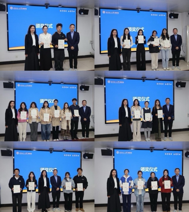 11月28日下午,武汉理工大学2024-2025学年“金坤奖助学金”颁奖仪式在学院311会议室举行。武汉理工大学“金坤奖助学金”捐赠人、管理学院校外生涯导师、工商管理891班校友周金坤,工商管理891班校友白蒙、朱帮军,管理学院院长陈晓芳,管理学院党委书记童泽望,学校校友联络区域(行业)中心主任高维义,学校社会合作处副处长丁志卫等领导嘉宾出席仪式,各年级辅导员及获奖受助学生共同参与,管理学院党委副书记张冰主持颁奖仪式。