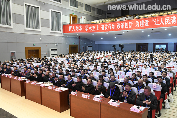 12月7日,武汉理工大学校友会第二次会员代表大会在西院大礼堂召开,来自全国65个地方校友组织,荷兰等3个海外校友组织,大连、复材行业等6个筹备中校友组织,学校26个学院校友分会的代表参加大会。校领导,职能部门、直属单位、附属单位主要负责人,校友工作联络员,离退休教师代表,学生代表共600余人参加了大会。校党委赵经副书记主持第一次全体大会。